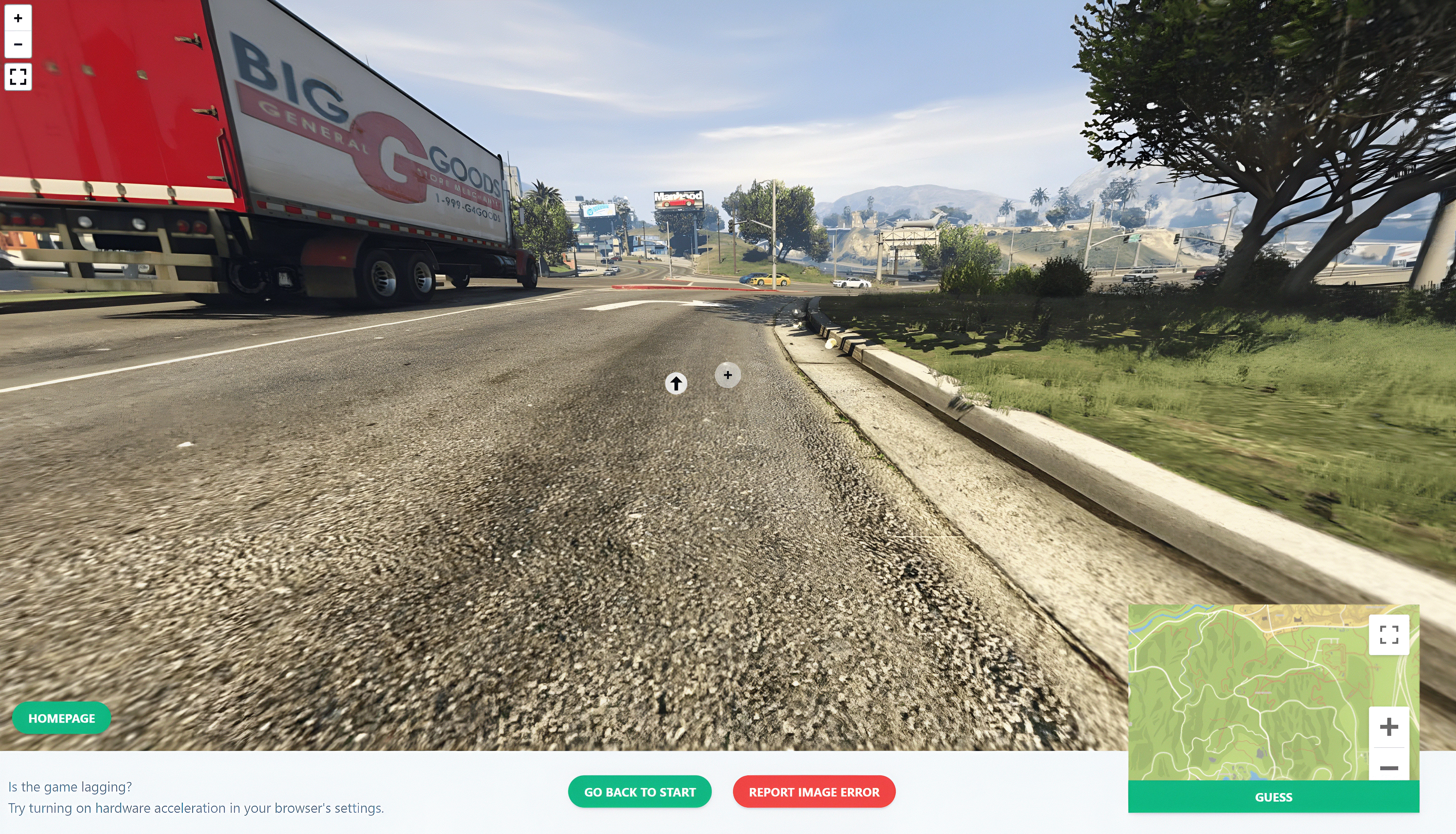 Оригінальна GeoGuessr — гра, яка пропонує визначити координати на реальній карті за фотографією місцевості. Ентузіасти зробили аналог цього додатку для п'ятої GTA. Зрозуміло, він розрахований на фанатів, які добре вивчили Лос-Сантос та його околиці.