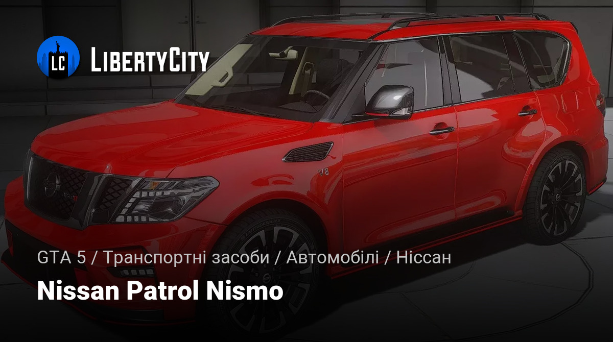 Nissan Patrol Nismo для GTA 5. Nissan Patrol Nismo - це спортивна версія позашляховика Nissan Patrol, оснащена поліпшеним двигуном і поліпшеною підвіскою. Екстер'єр доповнений аеродинамічними обвісами, великими колісними арками і спортивним дизайно...