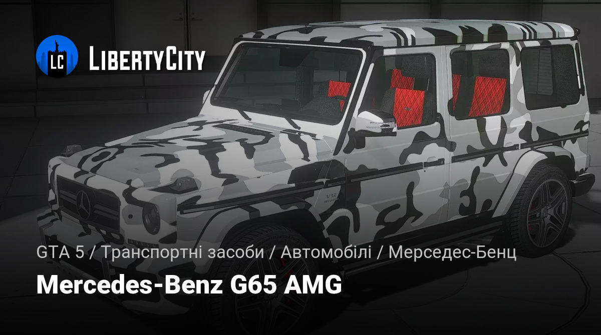 Mercedes-Benz G65 AMG для GTA 5. Mercedes-Benz G65 AMG – це потужний позашляховик. Зовнішній дизайн G65 AMG відрізняється масивними формами, кутовими лініями та характерною решіткою радіатора з подвійними ламелями. Він також оснащений великими коле...