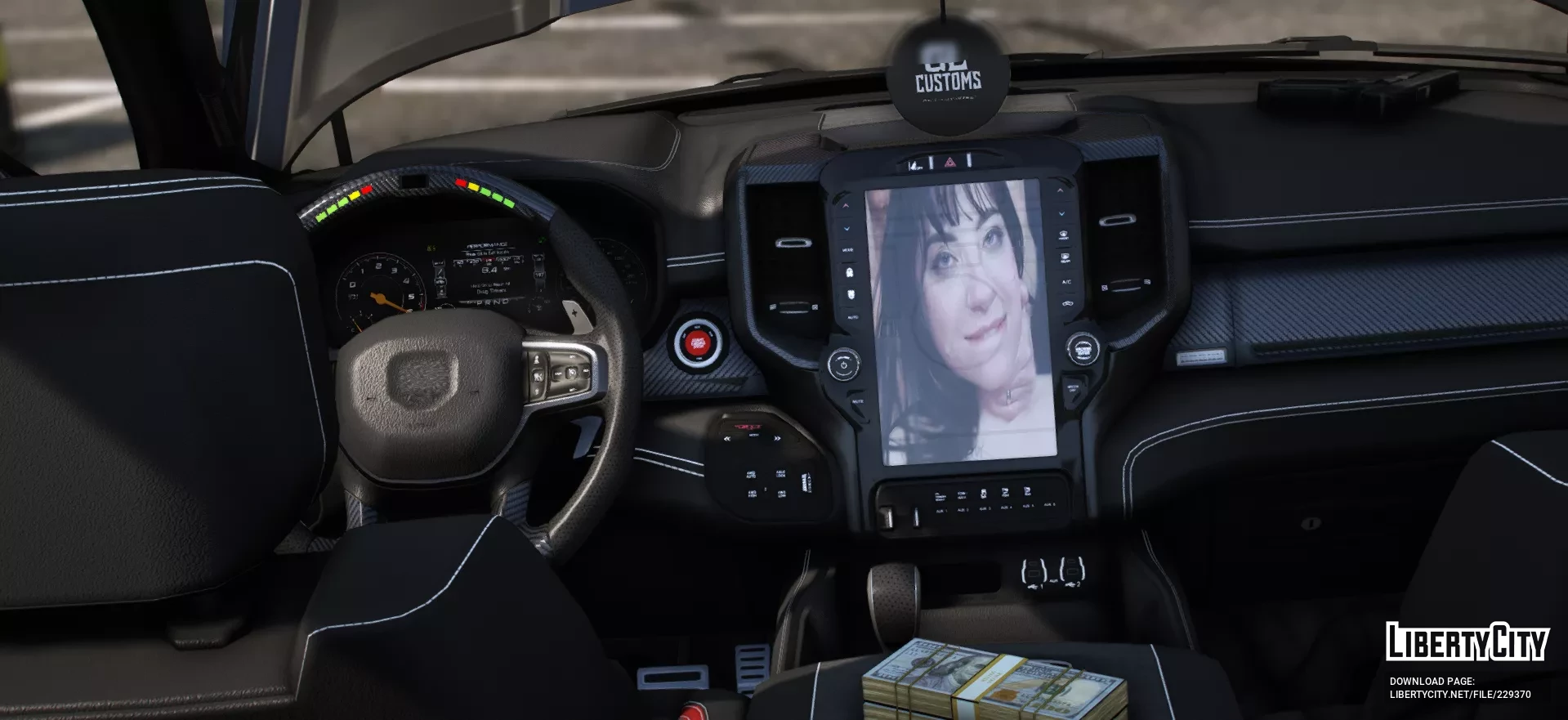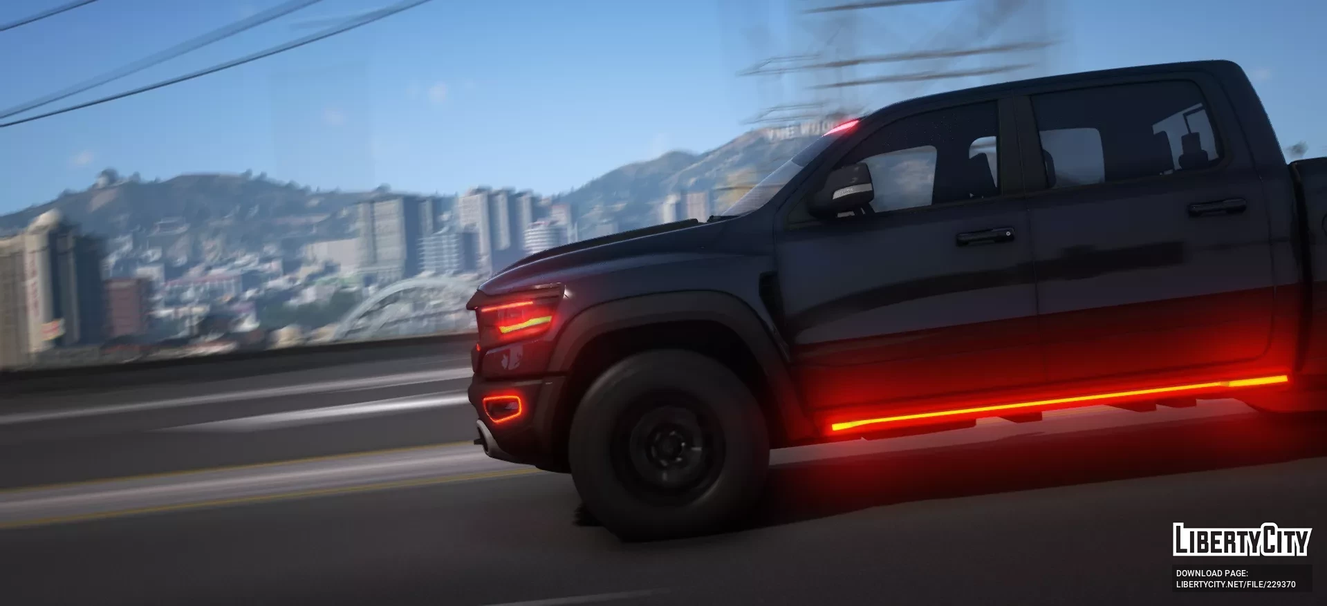 - Фирменная решётка радиатора с крупной сеткой и логотипом RAM выделяется контрастной LED-подсветкой красного и синего цветов, придавая автомобилю уникальный и футуристичный облик.
