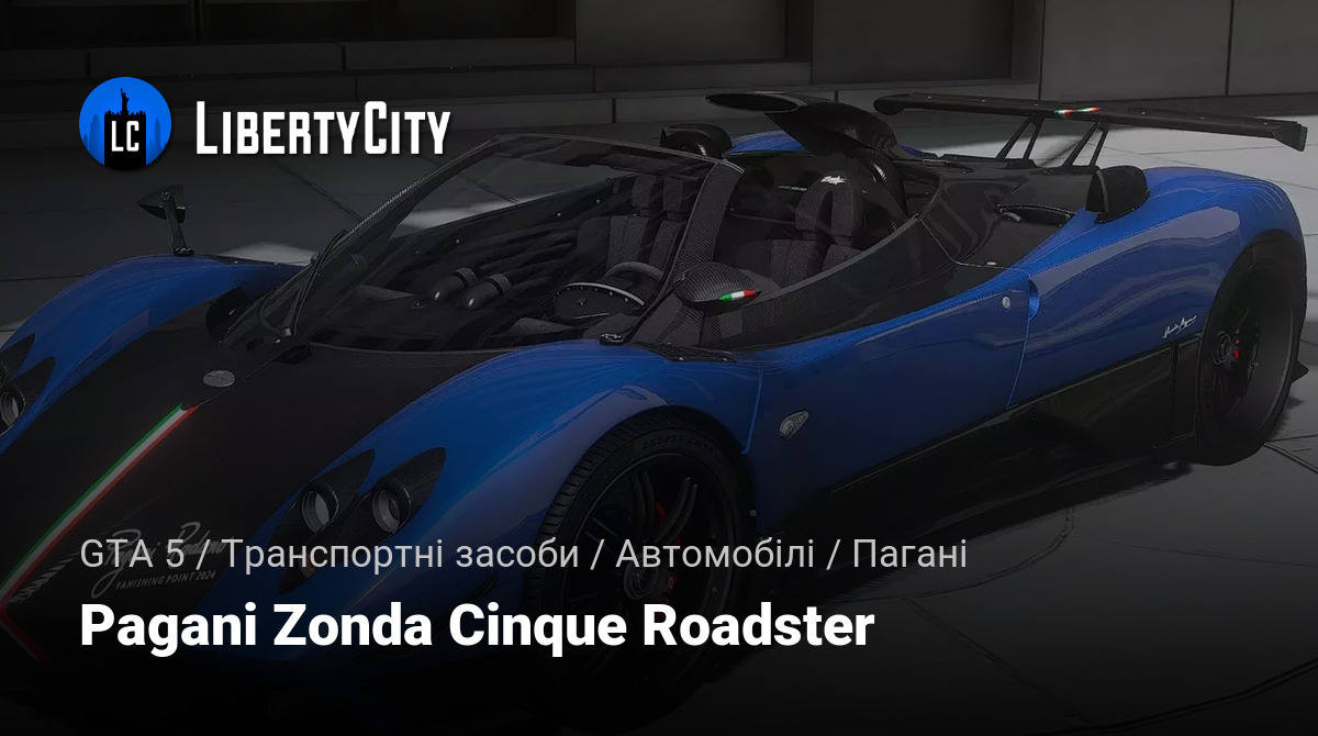 Pagani Zonda Roadster Cinque для GTA 5. Особливості: Модель високої якості; Підтримує основні функції гри; Якісні текстури; Робоча оптика; Відмінна адаптація до ENB. Приємної гри! ...