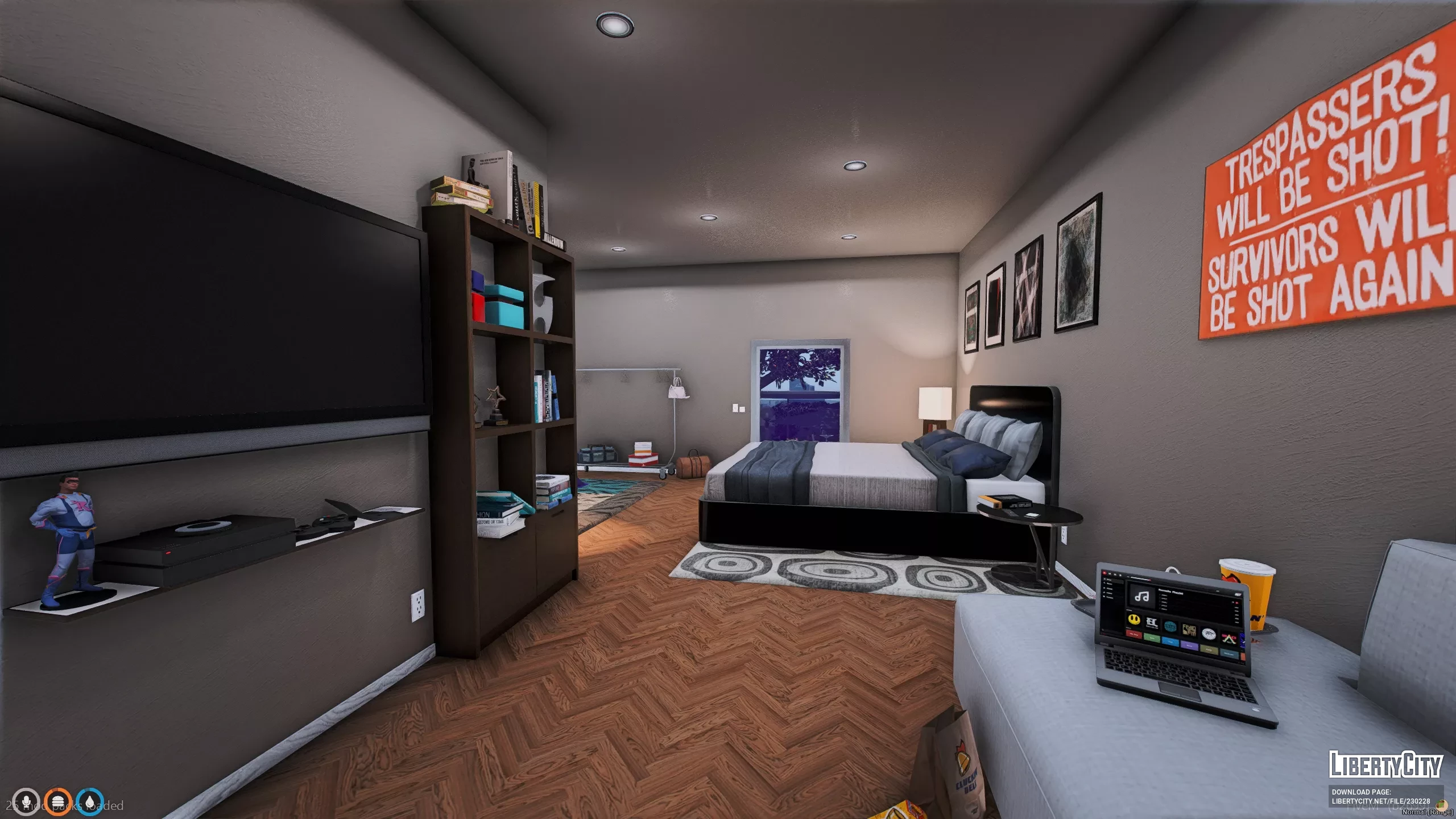 Majesty Mansion — это роскошный особняк, расположенный на возвышенности с панорамным видом на город. Внешне здание выполнено в современном стиле с элементами классики: массивная крыша с несколькими скатами, темный фасад и большие окна. Вокруг особняка разбит ухоженный двор с зелёными насаждениями и аккуратными кустарниками. Территория ограждена кованым забором с автоматическими воротами, а перед домом есть просторная парковка для автомобилей. Особняк окружён густыми деревьями, что создаёт атмосферу уединённости и приватности, несмотря на близость к городу.
