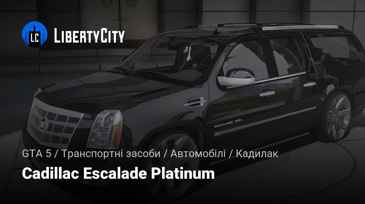 Cadillac Escalade Platinum ESV для GTA 5.  Cadillac Escalade Platinum ESV — це розкішний позашляховик, що поєднує в собі елегантність і потужність.  Передня частина автомобіля виділяється масивною, хромованою решіткою радіатора з гранями, що надає й...