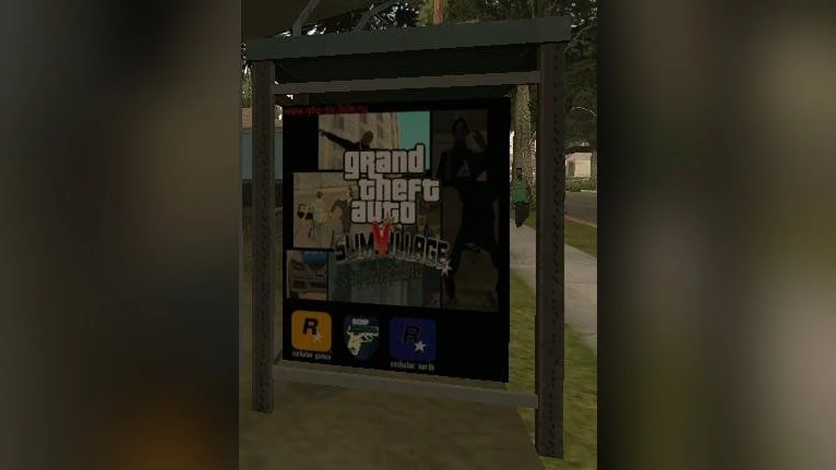 Стандартна автобусна зупинка і знак в поліпшеній якості. Оновлення v1.2: - Педи тепер сидять рівно і не висять в повітрі - Покращено денне і нічне освітлення - Модель адаптована до ENV відображенням з SkyGfx Особливості: - HQ моделі і текстури...