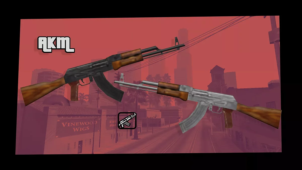 Цей мод є переробленою версією моделі АК47 з Liberty City Stories. Оригінальна модель АК-47 з текстурою була використана для цієї моделі. Журнал змін: Додано новий приклад для зброї. Редаговано передню частину зброї, щоб вона виглядала як АКМ....