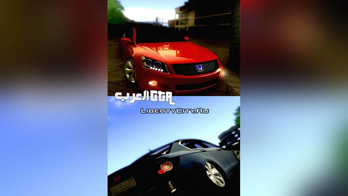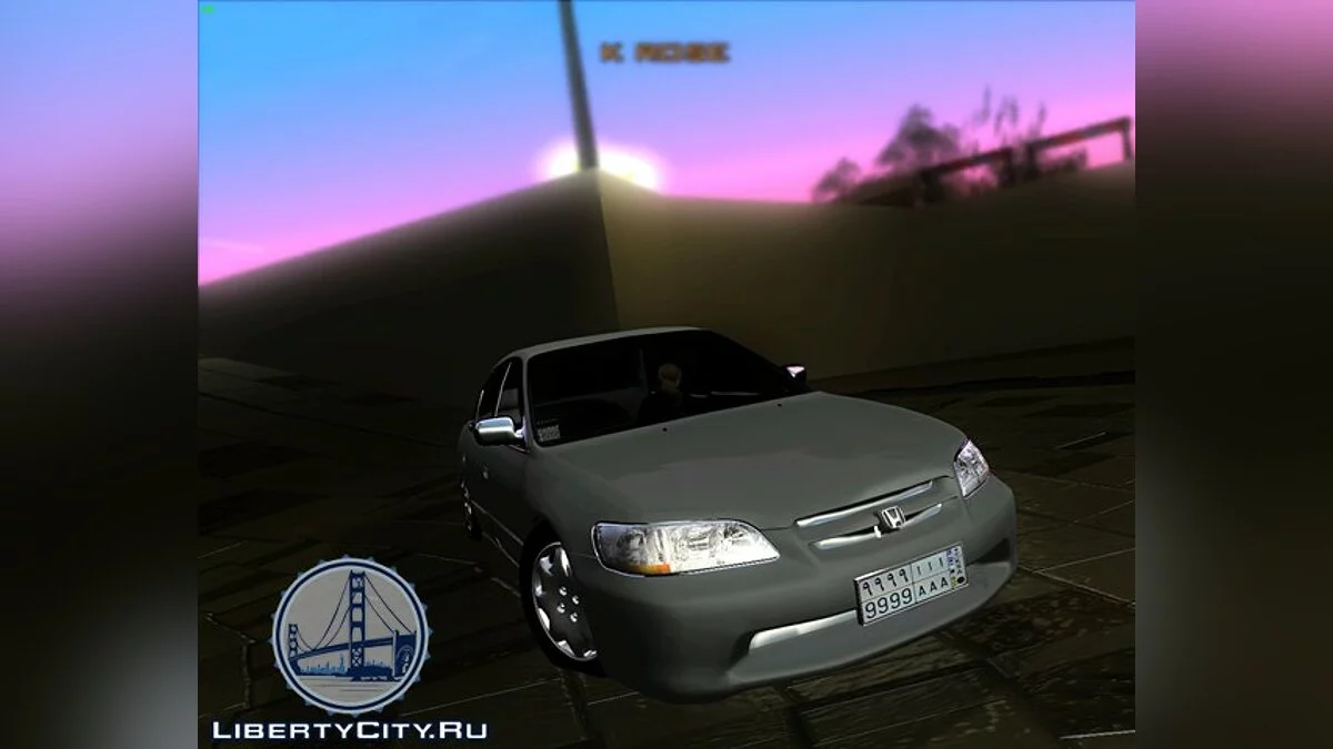 Хонда Аккорд для GTA San Andreas. Транспорт налаштований під: • Державні знаки ( license_frame/nomer ) • Вініл ( remap_body ) • Поворотники (leftflash, rightflash) • Освітлення ( vehiclelights128 ) • Тонування ( lob_steklo/pered_steklo/zad_steklo )...