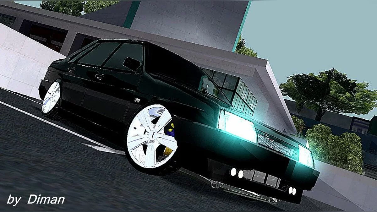 ВАЗ 21099 для GTA SA. Особливості моделі: - Автомобіль адаптований до моду IVF і активної приладової панелі; - Автомобіль правильних розмірів; - Хороша фізика та модель пошкоджень; - Реалістичне світло фар; - Власна тінь....