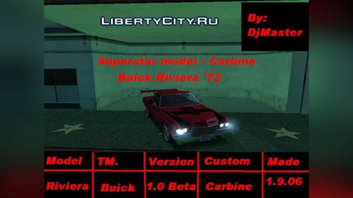 Buick Riviera 1973 для GTA San Andreas. Особливості: - SA стиль; - Гарний корпус; - Маленька вага; - Підтримує основні функції гри. Приємної гри!