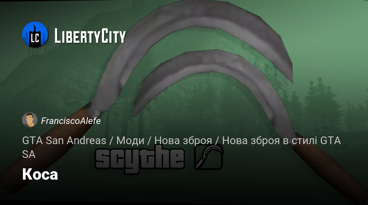 Всім доброго дня! Представляю ще один простенький мод, який я зробив всього за 30-60 хвилин. Косу я робив повністю з нуля. Це коса на заміну лопати, згодиться тим, хто знімає фільми або просто хто хоче собі косу в Grand Theft Auto, якої там до речі ...