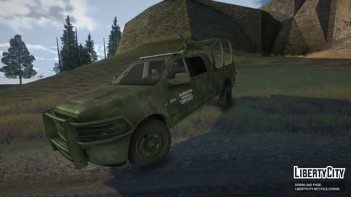 Dodge Ram 3500 Армія Мексики Хроматичний Ліс — це важкий пікап, що використовується мексиканською армією для перевезення особового скла та обладнання в лісистій місцевості, оснащений спеціальним камуфляжним забарвленням. Він вирізняється потужним двигуном, високою прохідністю та надійністю, що робить його ефективним для військових операцій у складних умовах.