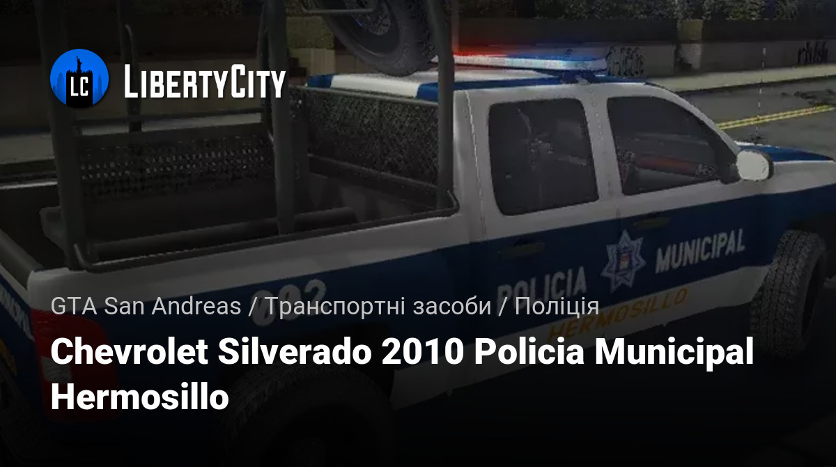 Chevrolet Silverado 2010 Муніципальна Поліція Ермосільо — це пікап, який використовується муніципальною поліцією міста Ермосільо для патрулювання та оперативних виїздів. Він вирізняється надійністю, місткістю та гарною прохідністю, що робить його ефективним для забезпечення порядку та безпеки на міських вулицях.