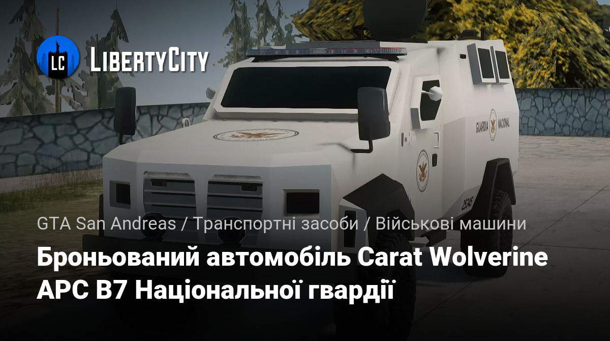 Броньований автомобіль Carat Wolverine APC B7 Національної гвардії — це транспортний засіб підвищеної безпеки, що використовується Національною гвардією для патрулювання та спеціальних операцій. Він обладнаний посиленою бронею класу B7, здатною витримувати постріли з автоматичної зброї, і призначений для безпечного перевезення особового складу в умовах підвищеної небезпеки.
