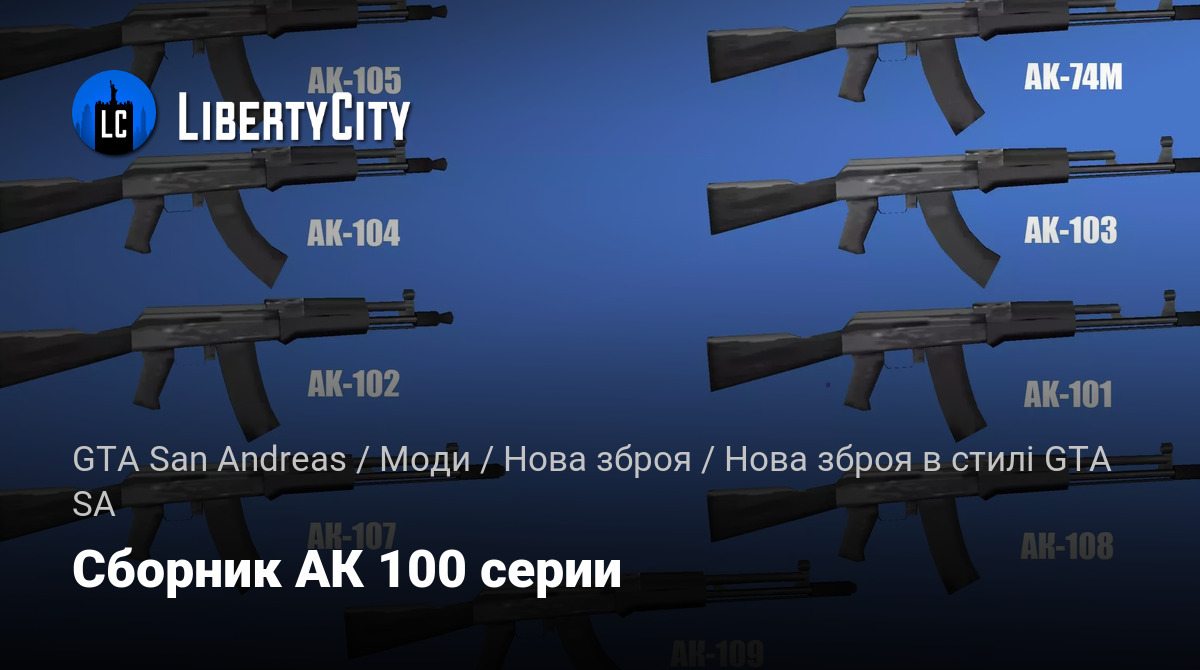 Данный оружейный пак добавляет в игру серию автоматов Калашникова 100-й серии, выполненных в стиле GTA San Andreas. Все модели аккуратно вписываются в атмосферу оригинальной игры и отлично подходят для военных и реалистичных сборок.