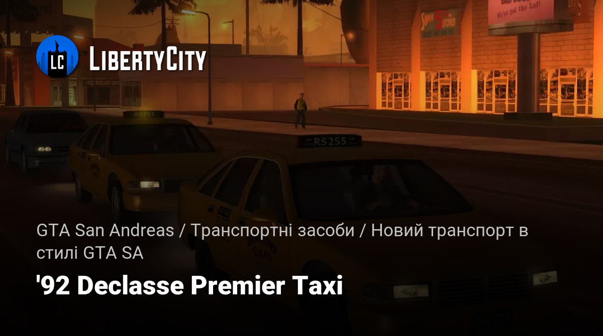 Це lore-friendly таксі для, створене на основі цивільної версії Declasse Premier ’92. Модель органічно вписується в атмосферу міських вулиць Сан-Андреаса і відображає стиль таксі початку 90-х.
