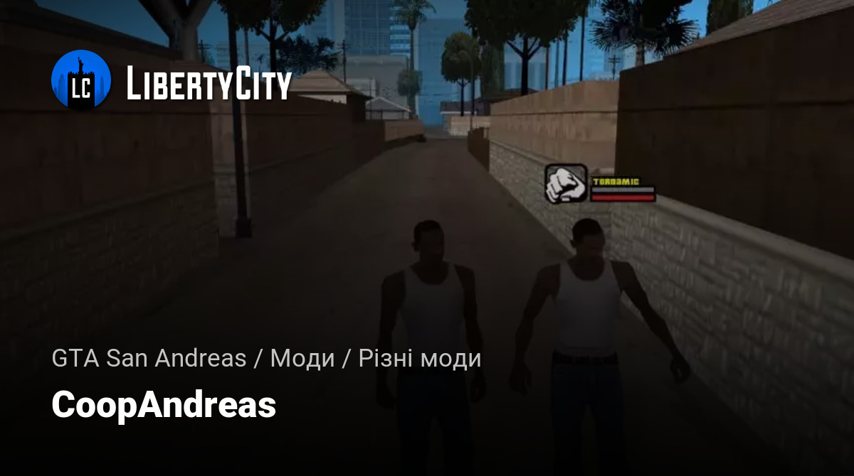 CoopAndreas — це неофіційна модифікація з відкритим вихідним кодом для Grand Theft Auto: San Andreas, яка додає в гру можливість спільного (кооперативного) проходження. Мод синхронізує переміщення, транспорт, місії та інші ігрові елементи між гравцями, зберігаючи оригінальний геймплей і атмосферу одиночного режиму.