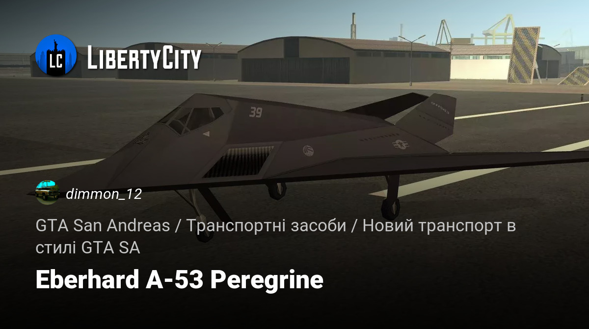 Ставится как новый транспорт без замены. В архиве также лежит вторая версия самолета с V-образным хвостом от основного прообраза, обозначен как 'peregrn1.dff'. Просто поменяйте названия dff файлов, чтобы поставить себе другой дизайн хвоста.