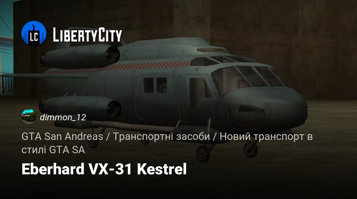 Привіт. Цей гість, як і Тетерев, походить з подібного GTA кіберпанкового таймлайну. Це вже прототип, перехідна стадія між вертольотами та повноцінними аеродинами (aerodyne / AV/ aerial vehicle), VX-31 Kestrel.