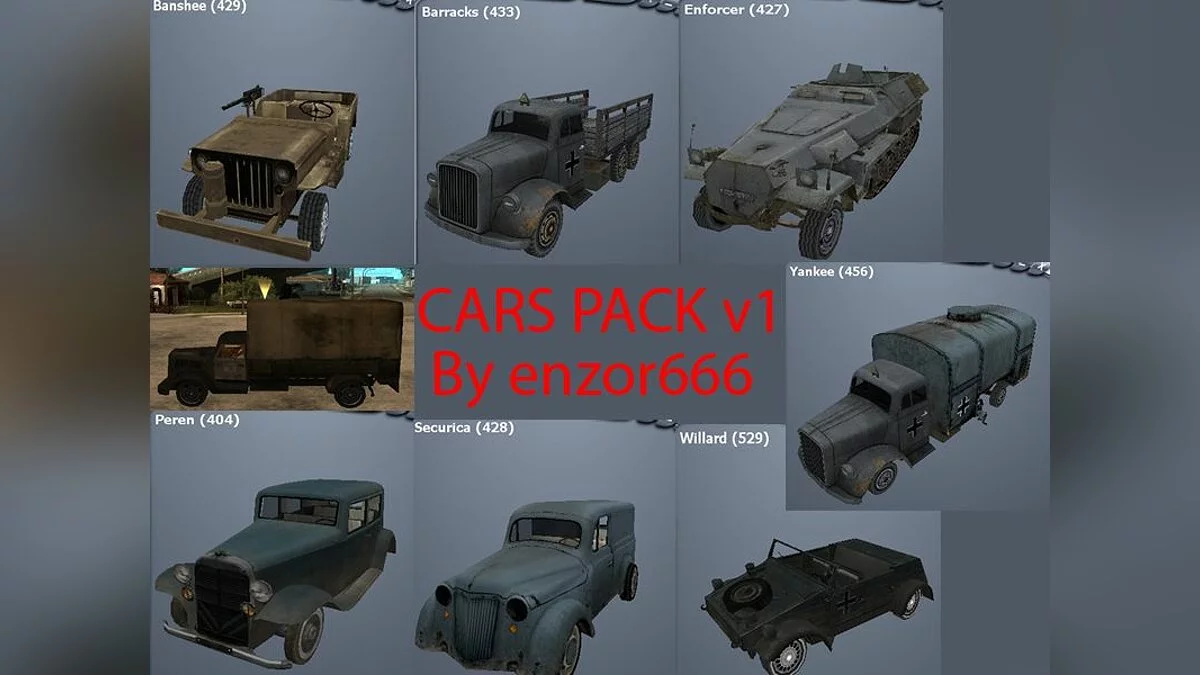 Невеликий пак автомобілів для GTA SA гарної якості. Власна тінь, реалістичне світло фар, реалістичні пошкодження, хороший інтер'єр, налаштоване управління.