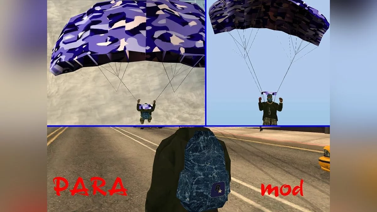 Мод замінює парашют на більш яскравий та якісний. Купол парашюта покритий морським камуфляжем, а рюкзак морською мозаїкою.